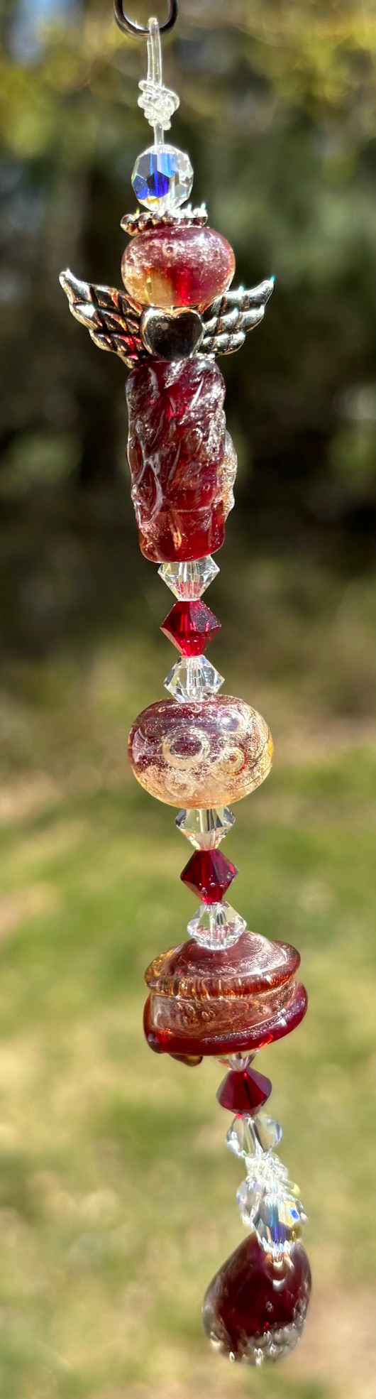 Garnet (January) heart angel with matching Swarovski crystals with rain drop bottom bead.