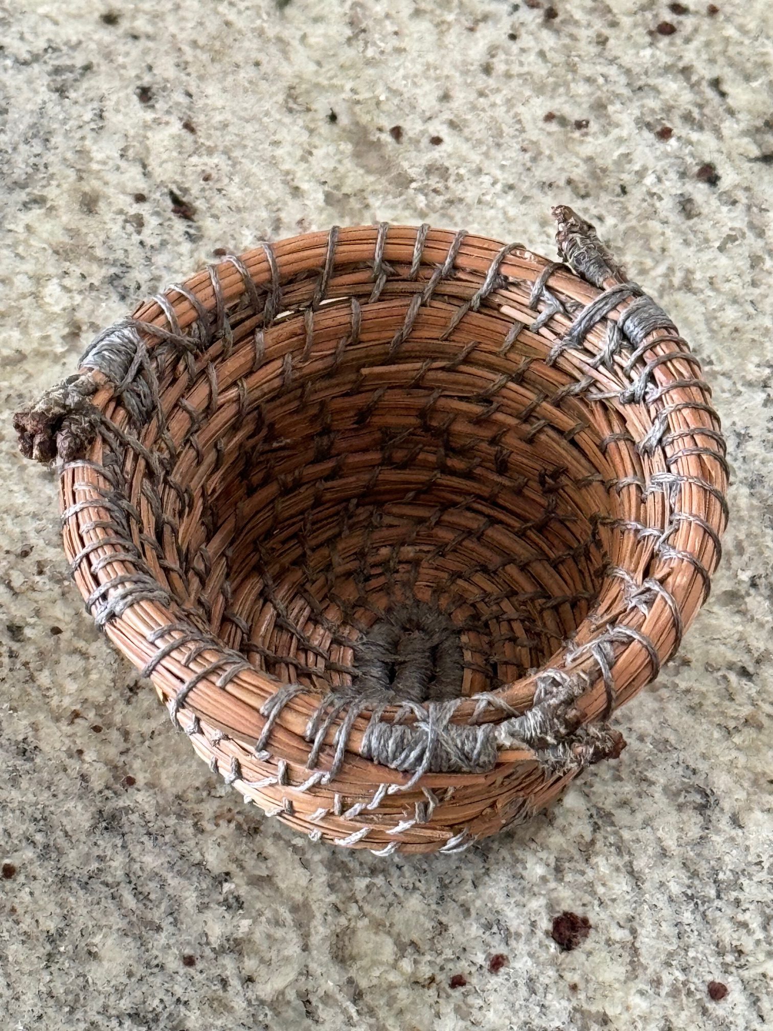 Pine needle basket with needle caps medium size approximately 3″x 3”, all basket are hand crafted and unique in size and look