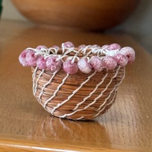 Pine needle memorial basket with horse hair infused lampworked woodland brown beads and horse hair weaved into the basket – All baskets are made from customers provided hair , size is approximately 2″x3″