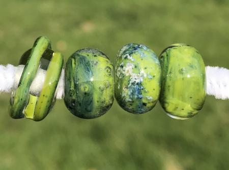 Solid, has streaks of blue within the glittery green- with ash, the blue will cling to the ash